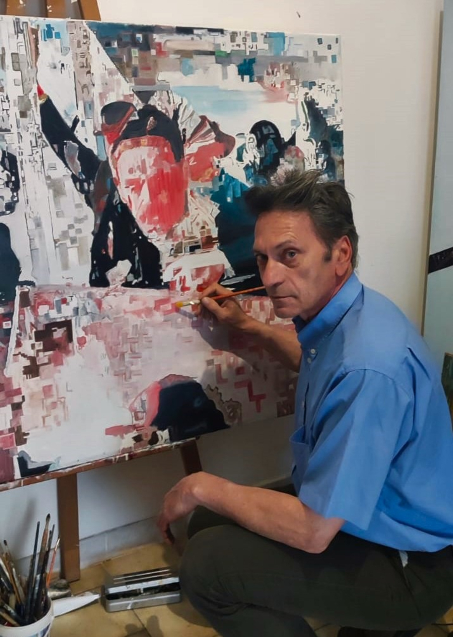 Peintre peignant une statue